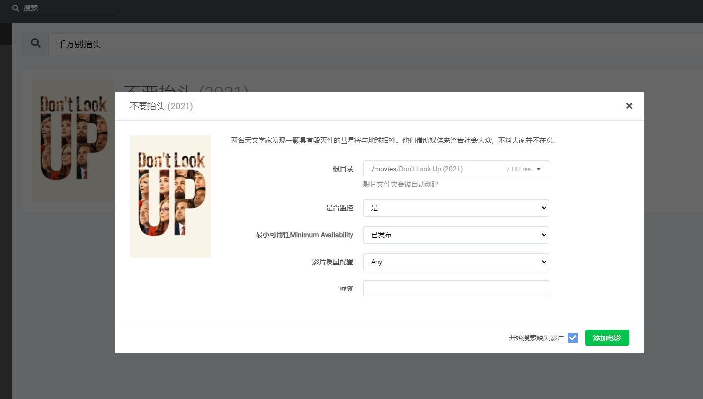 只需一个片名:点一下监控,完事。