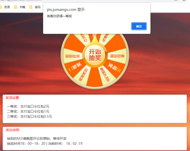 你设置的时间太长了 等下几百个一等奖