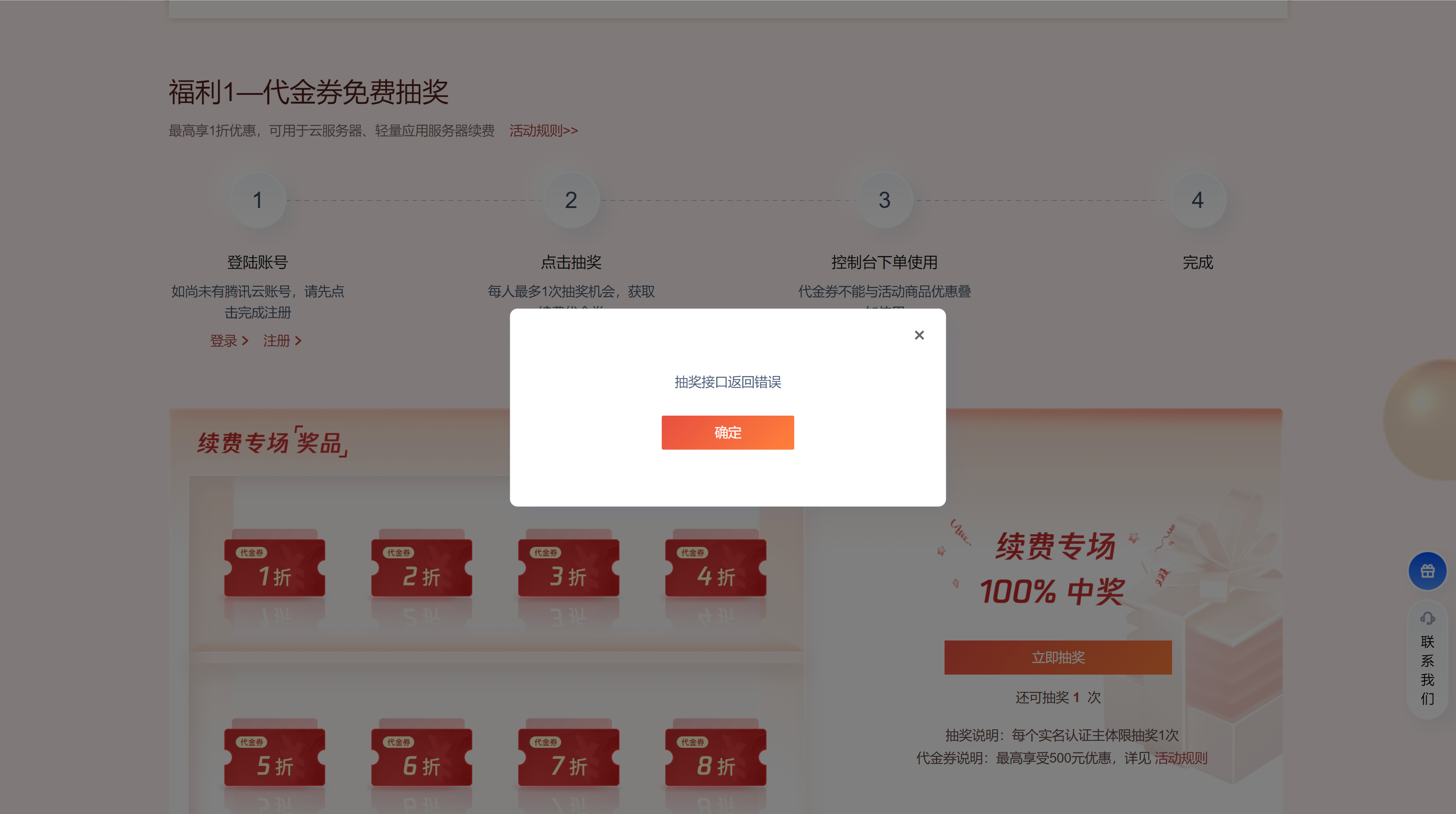 1、这个只是抽奖,所以应该说是有概率拿到1折券。2、无aff地址:https://cloud.tencent.com/act/pro/may ...