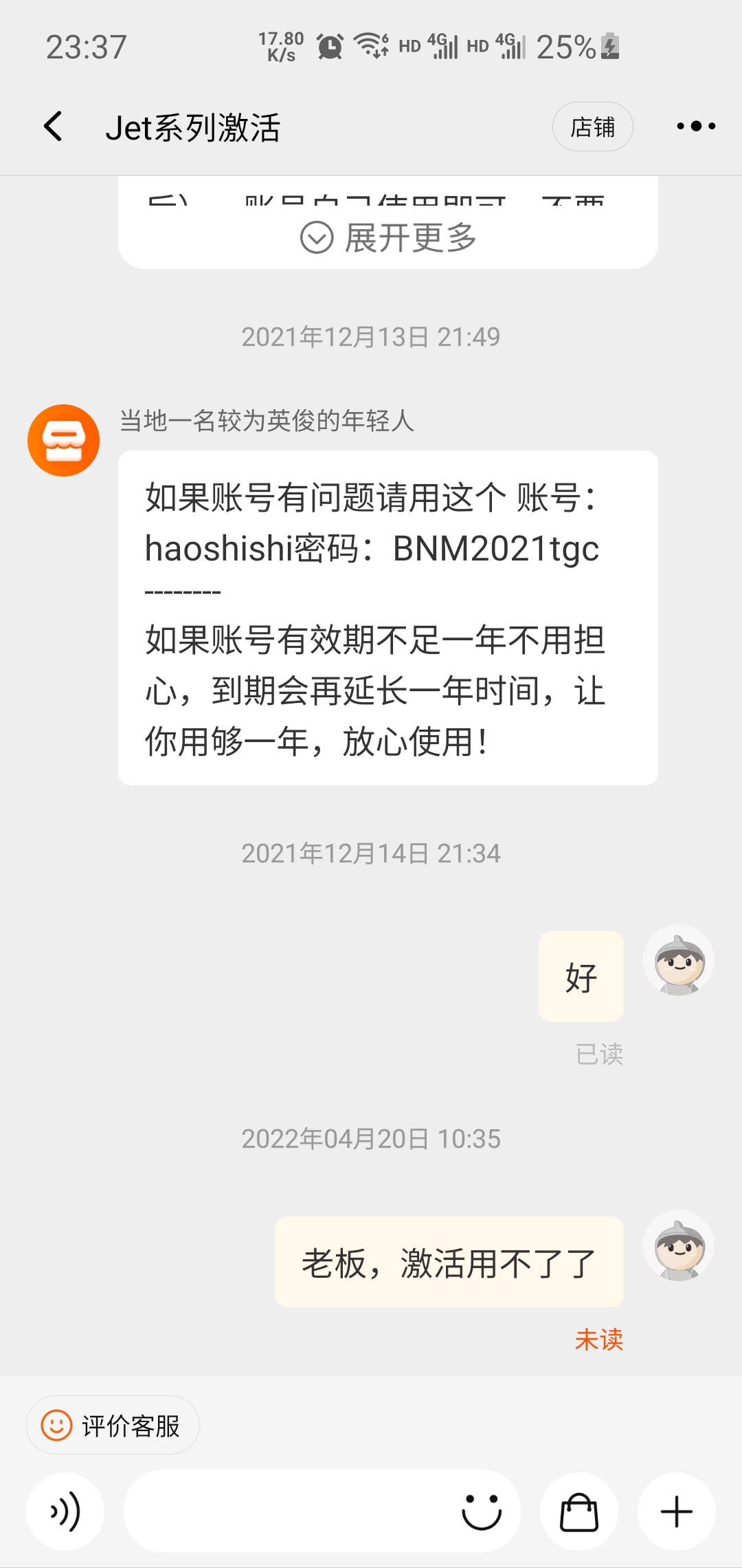 25元都想着这样子白** 实属不厚道 首先你去年买的idea授权账户 到今年发现卖家关店了 也就是期间这段时间你是享受了卖家提供的虚拟物品服务还特意去申请淘宝介入,白**也总有个度,只能说道不同不相为谋,你的格局也就这样子了