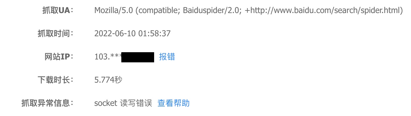 如果抓取失败,在服务器的访问中看不到,所以不清楚是什么ip地址,不外乎百度的抓取爬虫