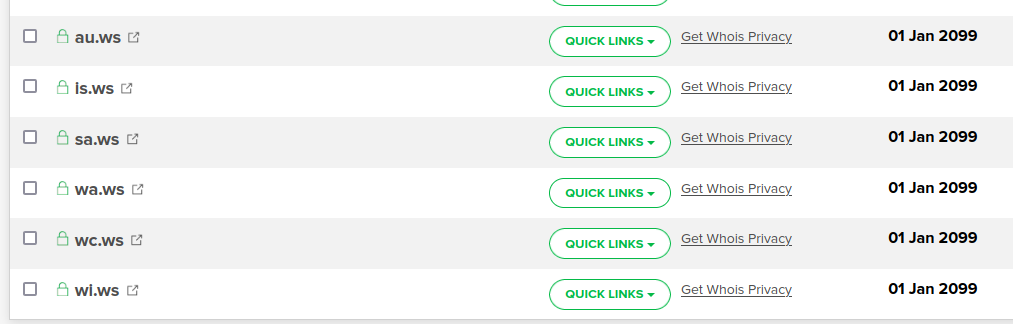 说起永久域名,当时注册局拍卖的 99 年 .ws 域名,我买了一些