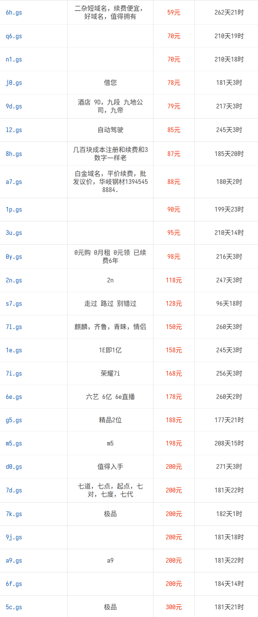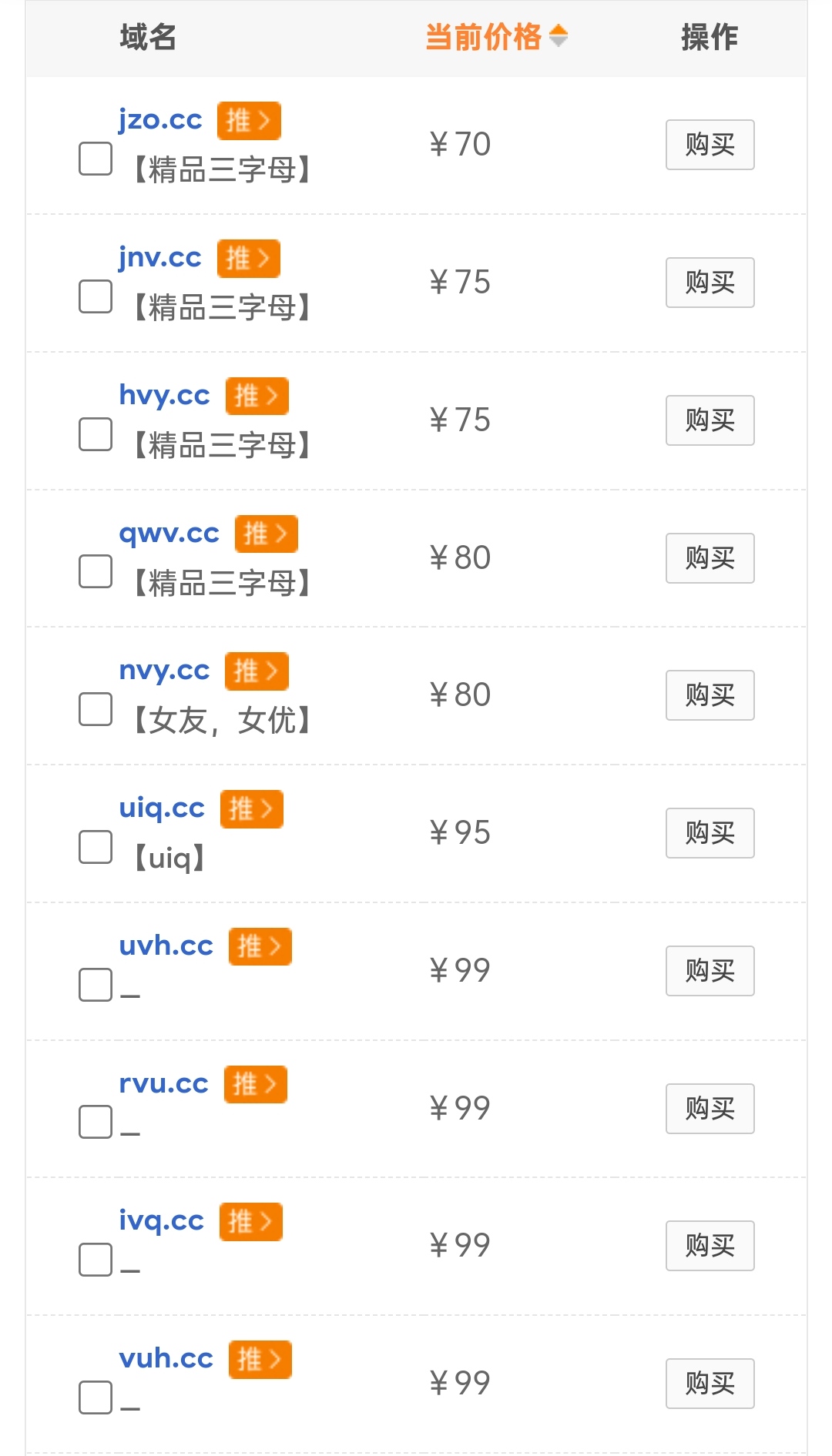 又去瞅了一眼,三字母两位数价格的挺多的