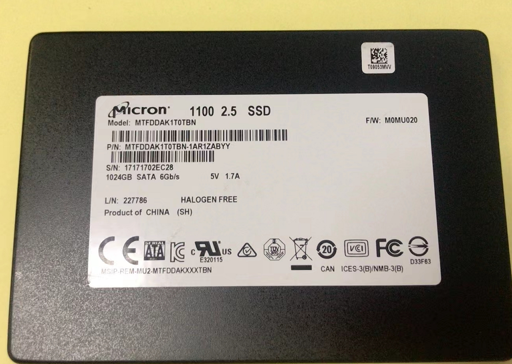 咸鱼淘的,Micron 1100,看上去确实是服务器淘汰下来的。
