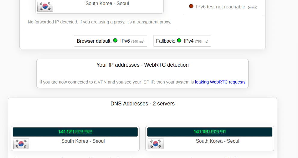 同样的设置,换韩国代理,DNS Address会反馈到韩国地区