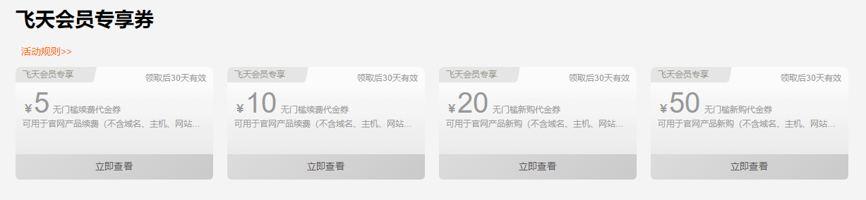 代金券仅限是针对阿里云官网云产品:如ECS、RDS、OSS等等产品,不含域名、主机、网站产品;