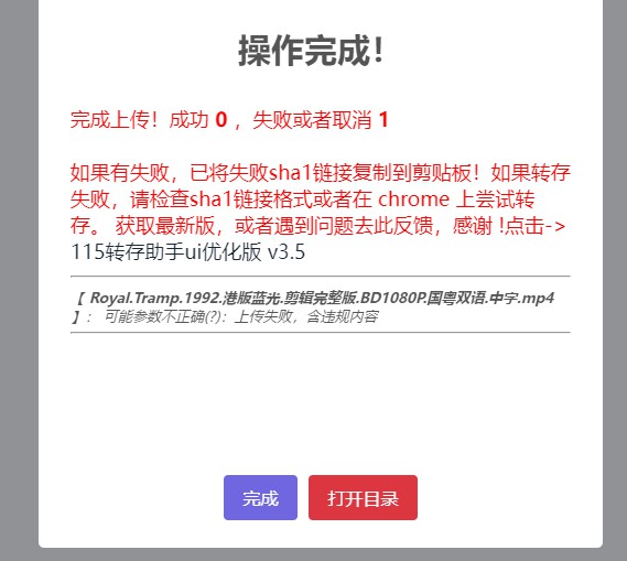 我这里115转存助手ui优化版 v3.6(2022.06.16) 是正常的! ...