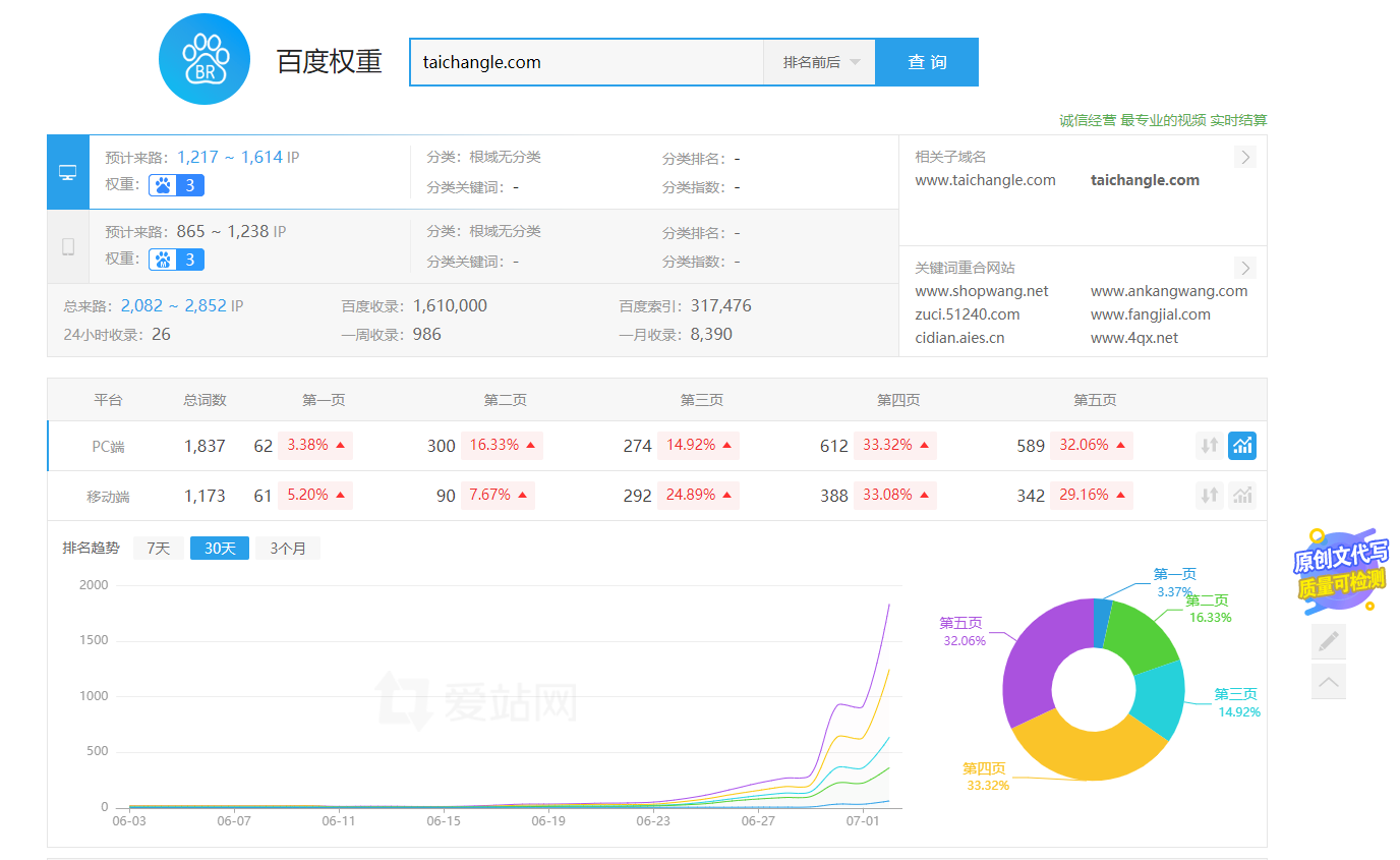 所以6月11号到现在 从权1重回权4这个seo操作不厉害吗?并且这站还没有北岸,老域名我也有,但是有多少能做到20多天升到权4呢