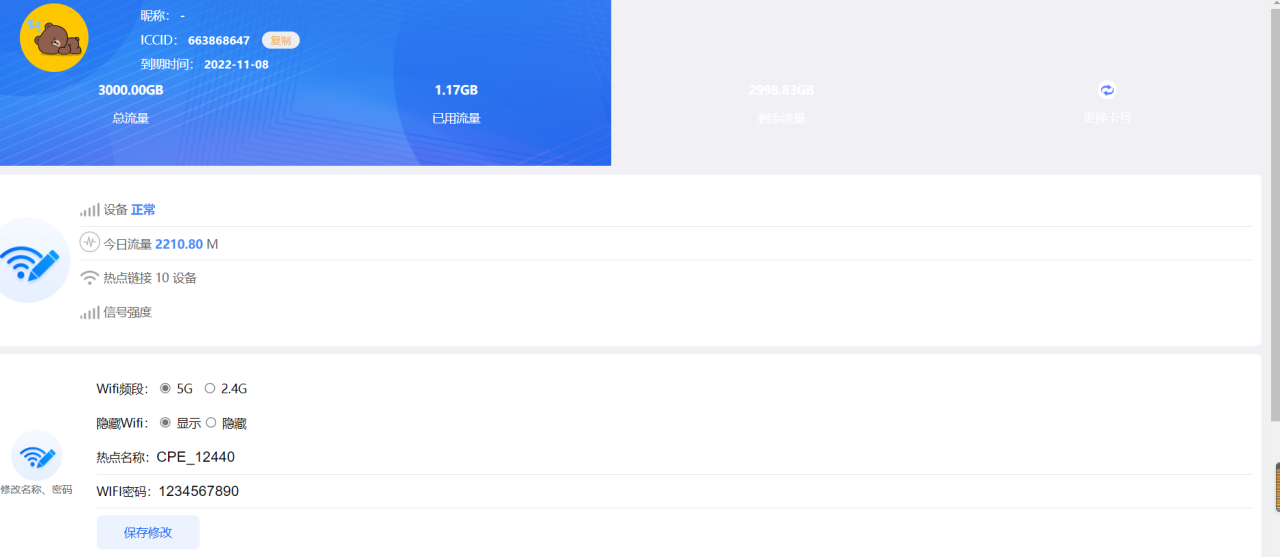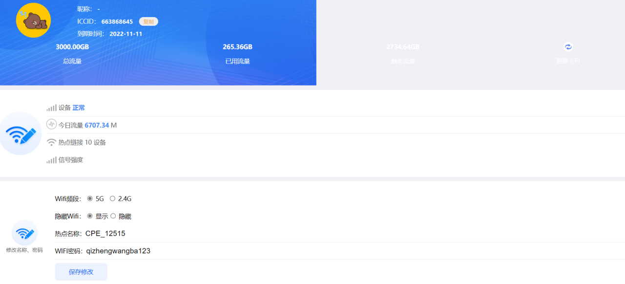 4.好评领取体验流量。可以选择30天10G流量或者3天3000G流量;然后要实名认证就可以使用了,三天线信号大约70DB,信号比以前买的不带电池的80db好一些(值越小越好)