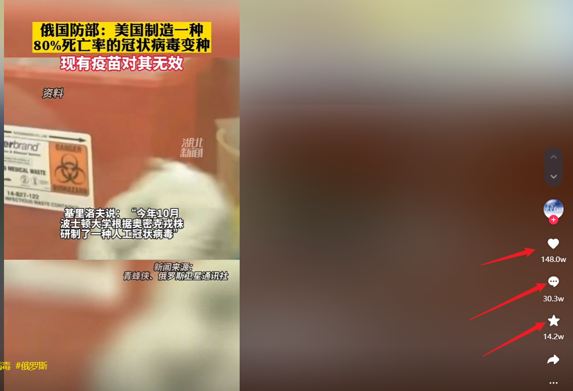 7.64 usr:/ 俄国防部称美造出一种致病极强的冠状病毒变种:现有疫苗对其无效# 美国 # 新冠病毒 # 俄罗斯https://v.douyin.com/rnfKcja/ 复制此链接,打开Dou音搜索,直接观看视频!