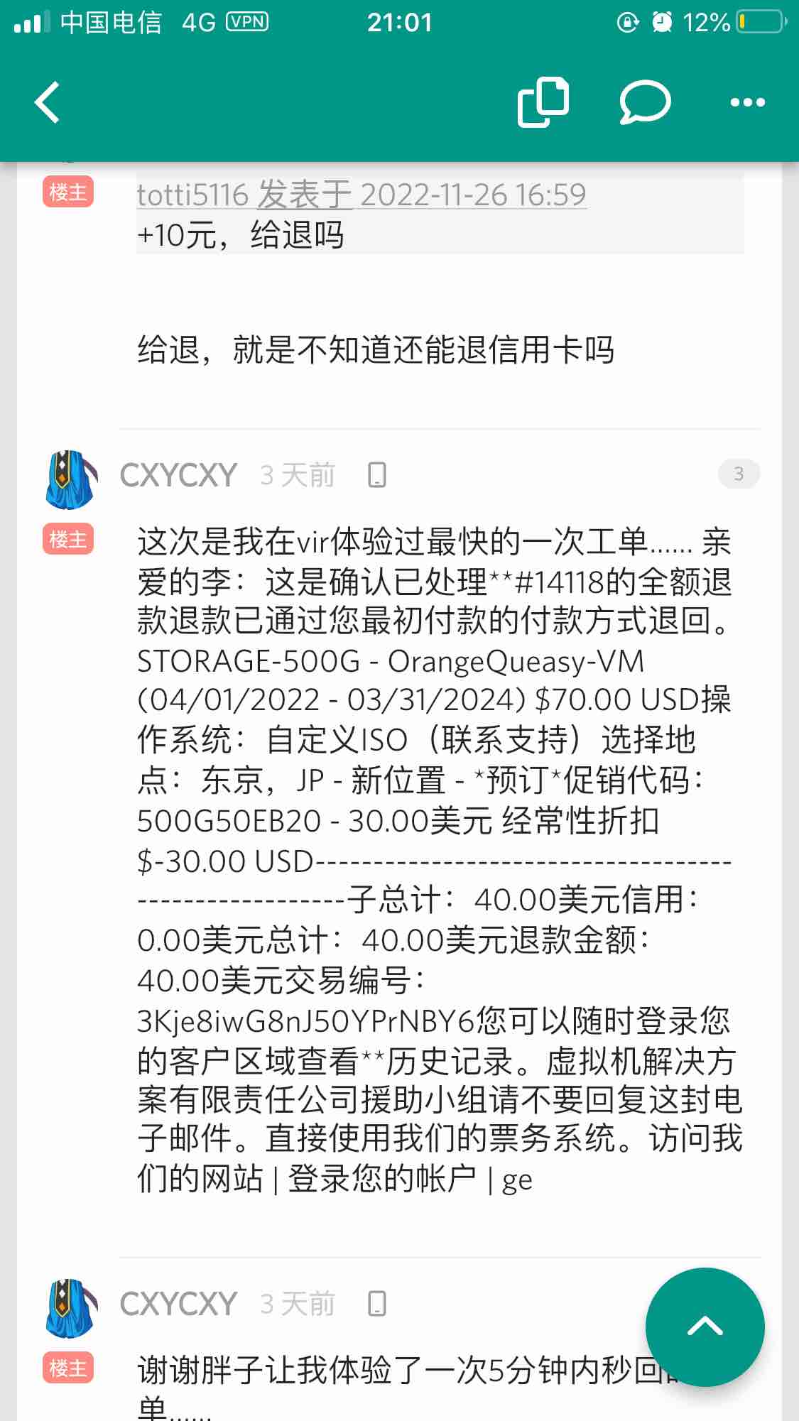 钱没到啊……工单立马就回复我了