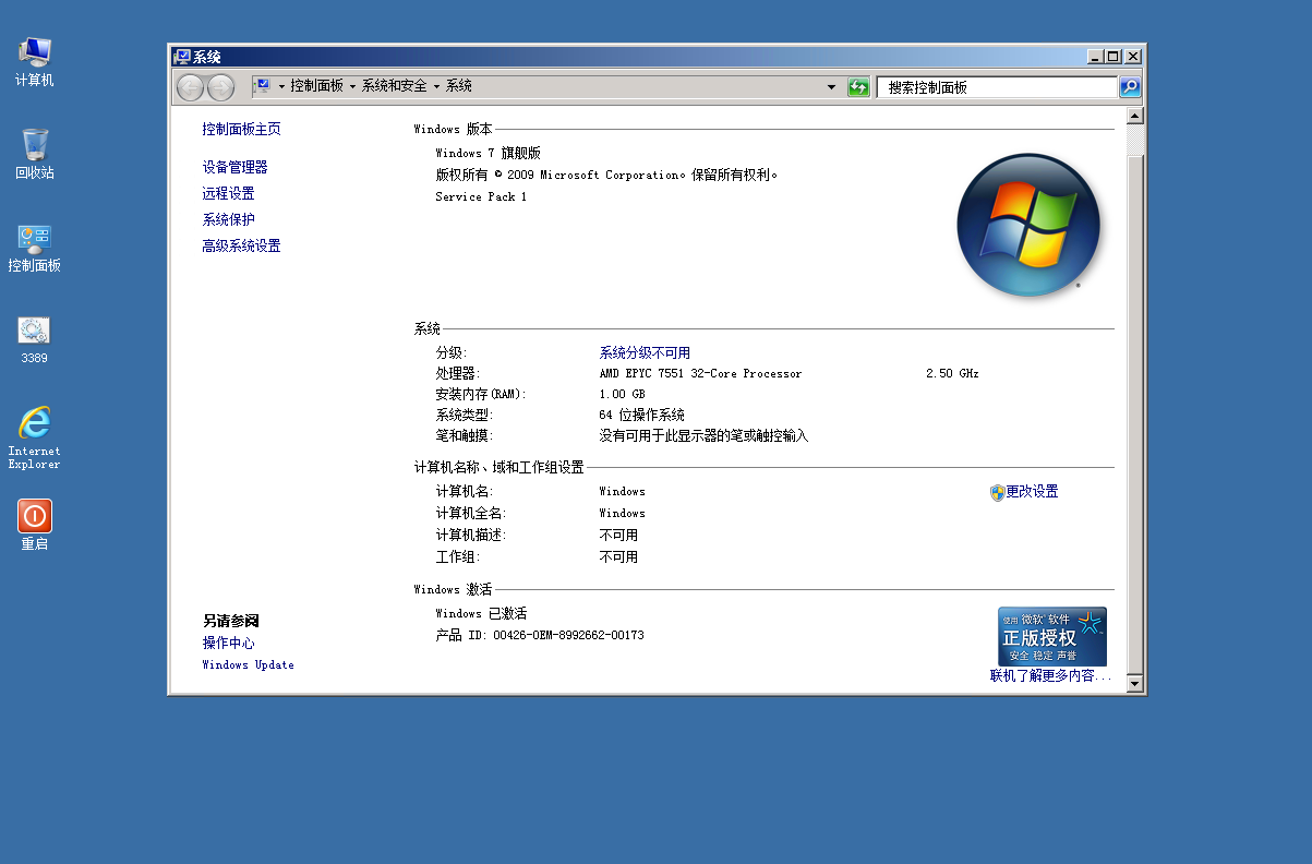 说明下,小于2G内存的VPS,都默认在安装的时候,会自动给系统开启虚拟内存,这占1-2G。假如你看到系统C盘并不是4G大小,也就是这个原因。C盘根目录有下隐藏的虚拟内存文件。