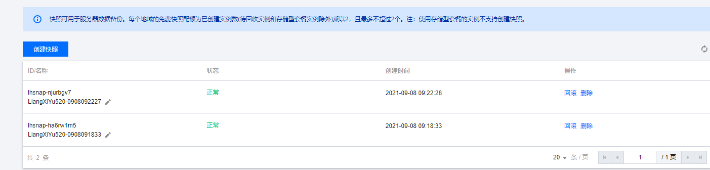 腾讯云有两个快照可以用,但是不能自动创建,不方便