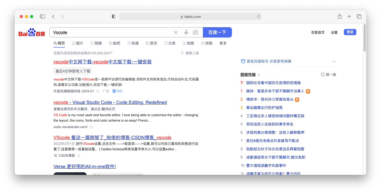 那个mjj说各大搜索都有广告,但是我这边百度必应搜vscode第一页都没有。