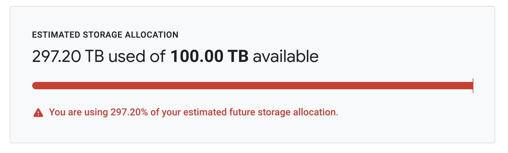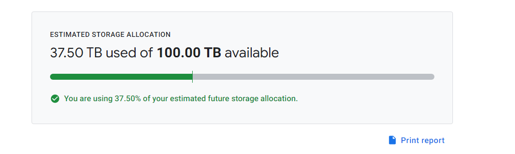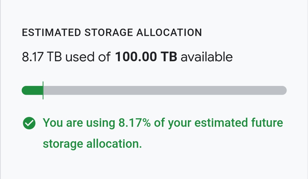 You are using 0.02% of your estimated future storage allocation.