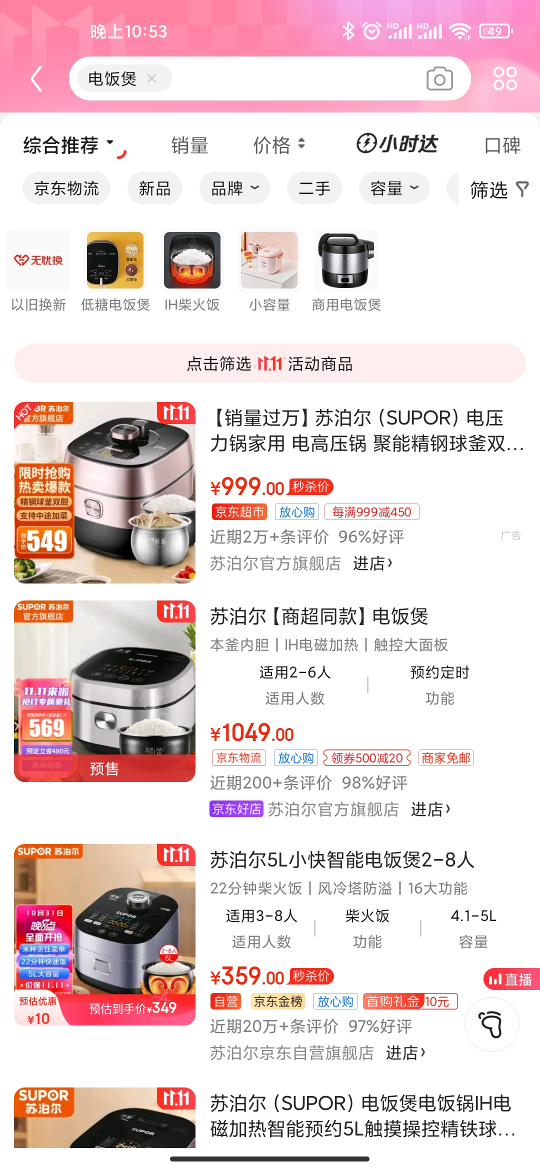 打开京东,搜电饭煲 前四个商品都是300以下的,那就是被打了屌丝标签