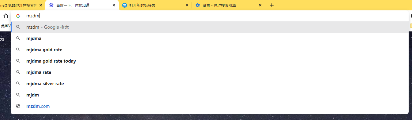 我知道了,你用的是默认的搜索引擎,添加一个就可以了: