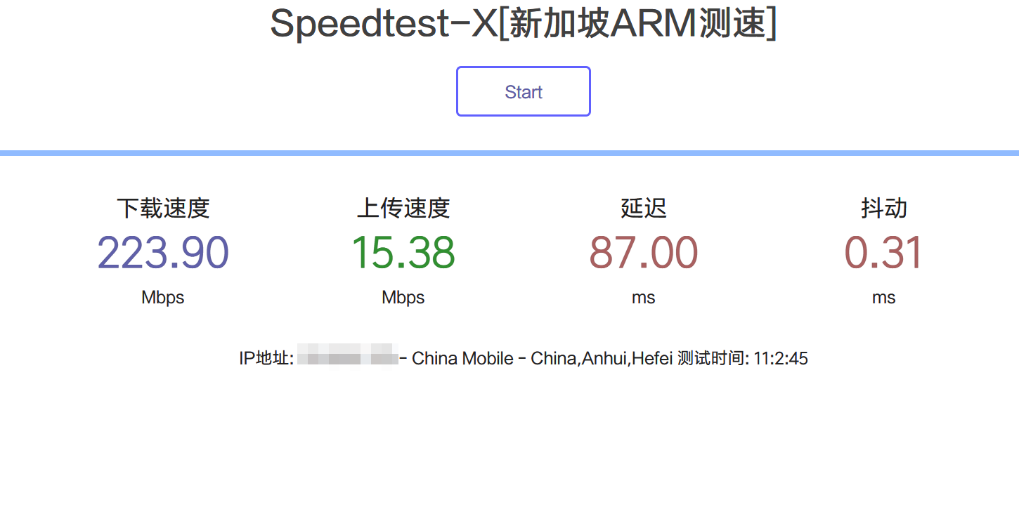 167.43Mbps 上传速度2.46Mbps 延迟256.00ms 抖动2.93ms